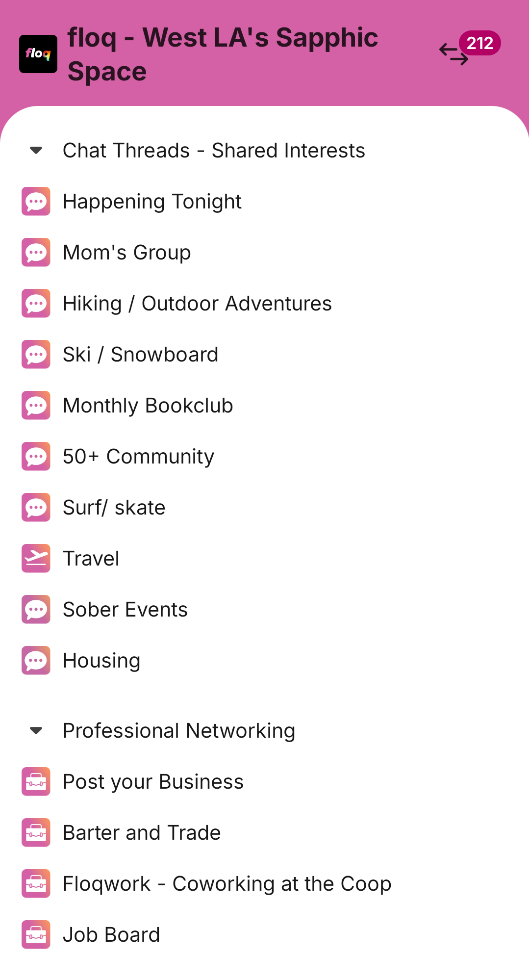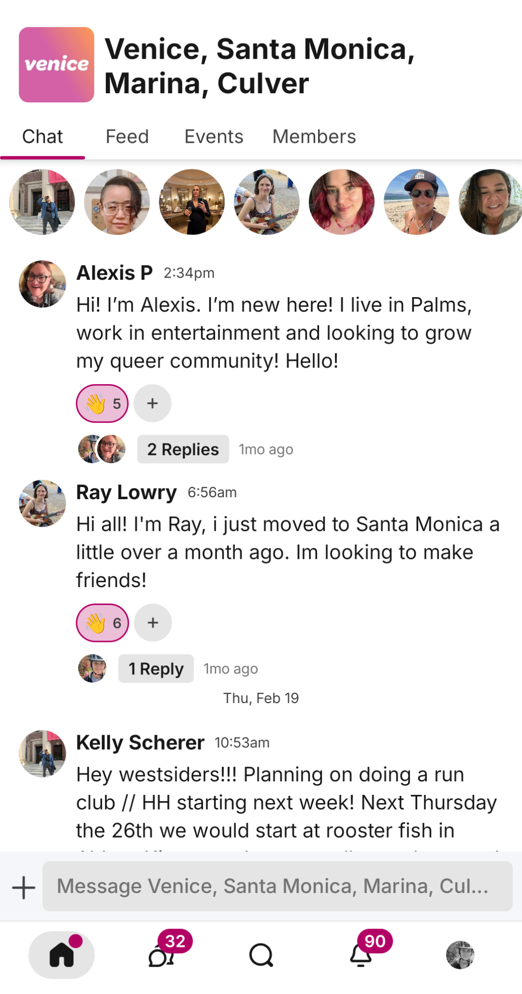 Make queer friends in your neighborhood and join chat threads in your interest area. Share your own events or check the “Happening Tonight” section to find impromptu hangs.